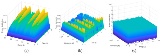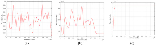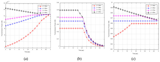 Power distributions for respective scenarios (a) βmax = 6 × 10−6 W, (b) Emax = 0.5 J, (c) T = 5 s.