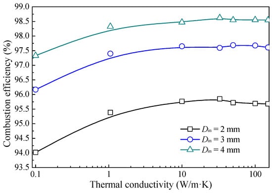 - Increasing the thermal conductivity enhanced the thermal performance of the combustion efficiency and emitter efficiency when the thermal conductivity was no greater than approximately 10 W/m·K because of the better preheating and heat transfer performances;