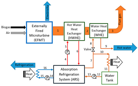 Villarroel-Schneider, J.; Malmquist, A.; Araoz, J.A.; Martí-Herrero, J.; Martin, A. Performance Analysis of a Small-Scale Biogas-Based Trigeneration Plant: An Absorption Refrigeration System Integrated to an Externally Fired Microturbine. Energies 2019, 12, 3830. https://doi.org/10.3390/en12203830