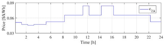 The first condition in Equation (7) must hold until the vehicle SoC reaches a value between the minimum SoC desired by the owner and the maximum allowed one. Moreover, considering the third condition in Equation (7), the duration of the time slot k is assumed to be consistent with the time required for an EV finishing the charging process to go away and for another EV to arrive to the same charger.