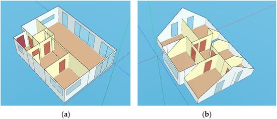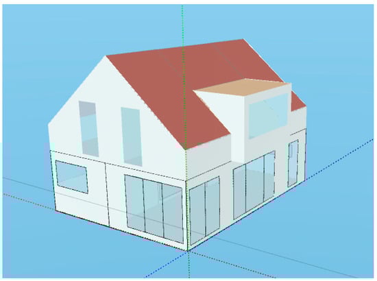 The 3D model of the house and the energy performance was created in software Audytor OZC (energy need calculation) version 6.8 Pro (Sankom, Warsaw, Poland). The axonometric projections can be seen in Figure 2.