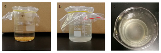 (a) The supernatant of oily sludge. (b,c) Culture medium containing the bacteria.