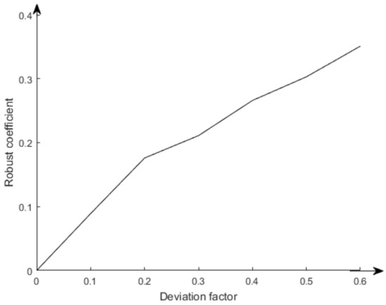 The maximum fluctuation range of the uncertain parameter can be obtained from Equation (15) when the minimum decision solution is not less than the expected target . That is to say, when the uncertain parameter X fluctuates within the range , the developed decision-making strategy can resist the threat caused by uncertainty, and the obtained decision solution must be not less than the expected target .