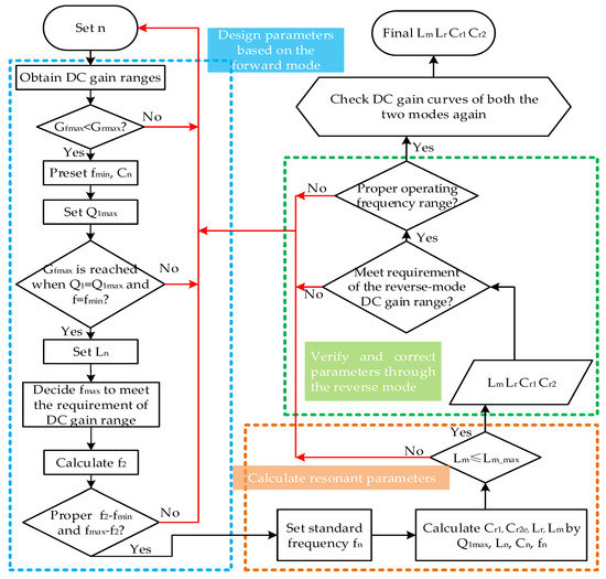 We take the procedures of designing the prototype as an example to illustrate the flow chart of designing GaN-based CLLC-BRC, as shown in Figure 6. Design requirements of the prototype are shown in Table 2.