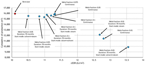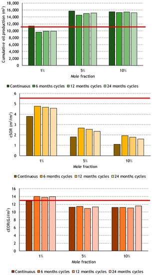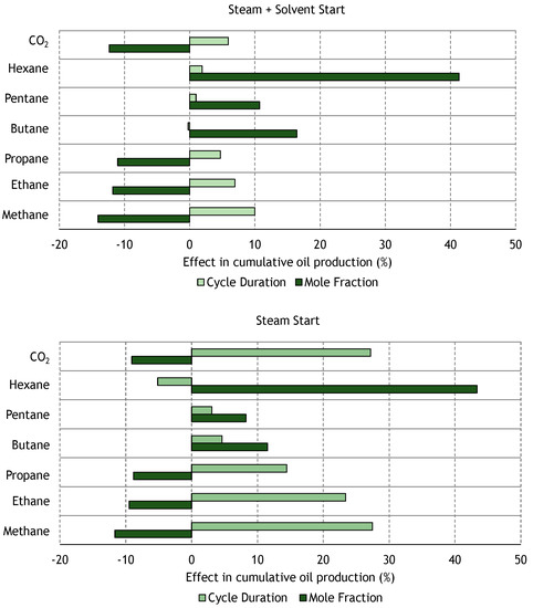 3.2. Impact of the Cycle Duration, Mole Fraction, and Start Mode in the Performance of the Cyclic ES-SAGD Process