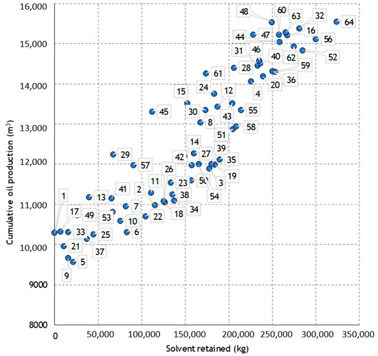 | Case # | C1 | C2 | C3 | Prod Oil Cum (m3) | Solvent Injected (kg) | Solvent Produced (kg) | Solvent Retained (kg) |