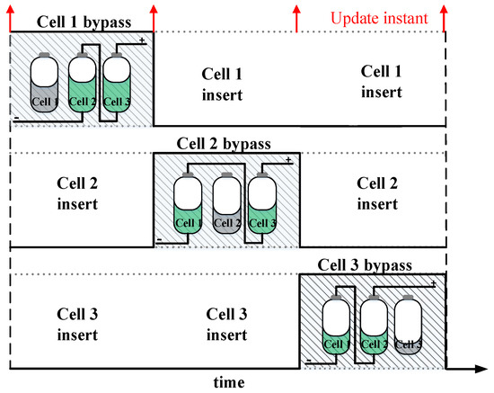 In order to improve the consistency of the batteries, an efficient strategy is proposed for balancing the SBP [27]. Instead of transferring energy from one battery to another, the SBP only inserts and bypasses the cells using the half-bridge chopper circuits as shown in Figure 3.