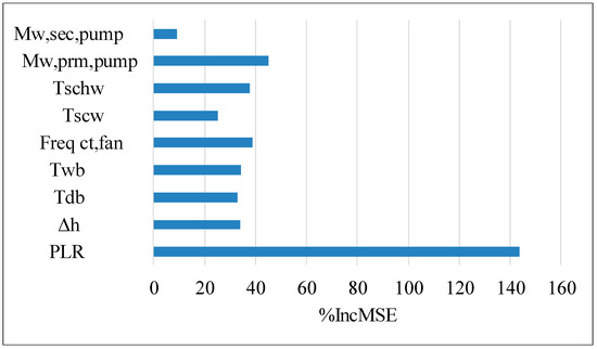 To evaluate the variable importance, the RF algorithm was implemented in the software R using the package of “randomForest” [34] and the results were plotted in Figure 7. The variable PLR has the highest importance, while the has the lowest importance. As discussed in [35], less important variables (e.g., % IncMSE lower than 10%) can be omitted. Therefore, was not used in the ideal SCOP model, and totally eight variables were used as the ANN model inputs.