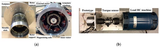 The manufactured prototype of the 6-slot slot/11-pole PS-SF-HMMM. (a) Prototype; (b) Test rig.
