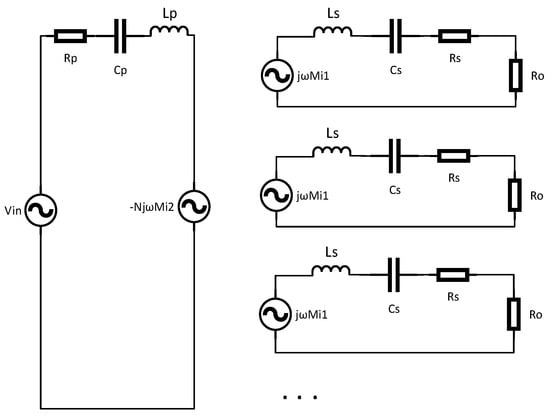 Figure 2 shows the equivalent circuit model of multi receivers coupled wireless power transfer system where and are the internal resistance of the primary and secondary coils respectively, and is the equivalent resistance of the load. Assuming that the mutual inductance between a single receiver and the primary side is , the impedance of a single secondary winding according to (1) is: