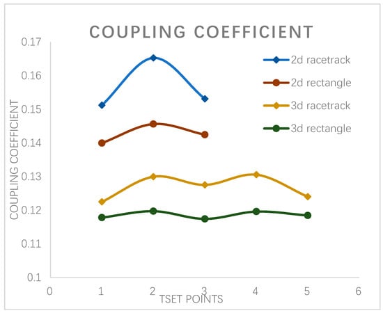 As shown in Figure 7, it is obvious that the racetrack has a slightly higher coupling coefficient than the rectangle track with the same length, and the short track shows better performance than the long track of the same shape. More detailly, for both 2d racetrack and 2d rectangle, the coupling coefficient is higher at middle of the track than that at two sides. For 3d racetrack, the coupling coefficient first increases and then decreases when receiving coil moves from side to the middle of the track, and the 3d rectangle track shares the same trend.
