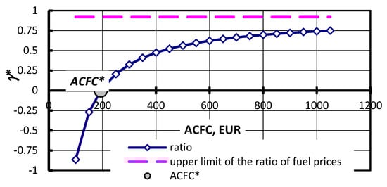 If DFpf = 0, then γ* = −∞. It means that the alternative fuel price must be less than 0. This statement does not make sense (Figure 4).