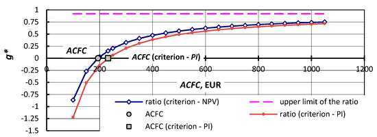 Let us find a critical value of the annual conventional fuel consumption cost ACFC* from Equation (14)