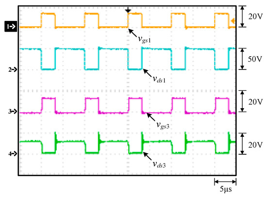 Measured waveforms at rated load: (1) vgs1; (2) vds1; (3) vgs3; (4) vds3.