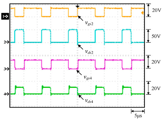 Measured waveforms at rated load: (1) vgs2; (2) vds2; (3) vgs4; (4) vds4.