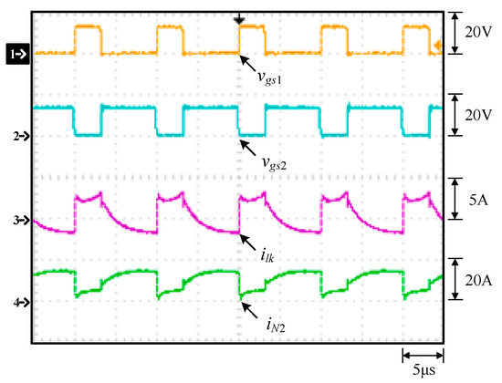 Measured waveforms at rated load: (1) vgs1; (2) vgs2; (3) ilk; (4) iN2.