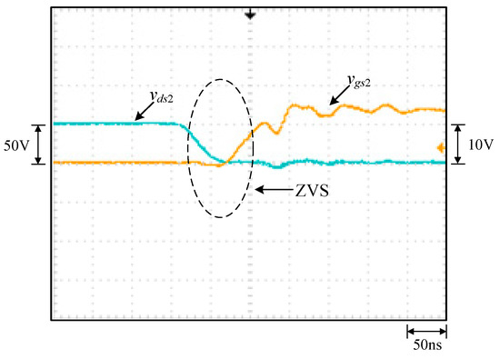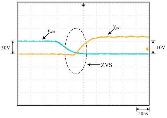 Prior to this section, system specifications should be given as shown in Table 2. The two blanking times between Q1 (or Q3) and Q2 (or Q4) are set at 100 ns and 150 ns, respectively. It is noted that in order to verify that the voltage conversion ratio of the proposed circuit is wider than that of the circuit shown in [24], the former has an input voltage of 60 V and an output voltage of 3.3 V, whereas the latter has an input voltage of 48 V and an output voltage of 3.3 V.