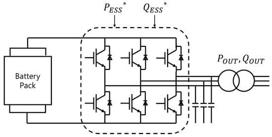 The ESS system dynamic model is developed in this paper to verify the effect of the proposed control method on the power grid. The ESS system structure is depicted in Figure 2.