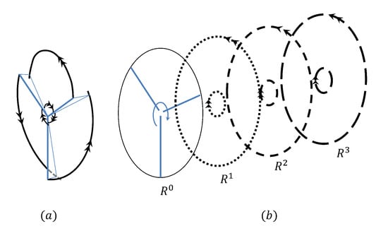 In this section, a finite length vortex line model is introduced as opposed to the semi-infinite vortex line model proposed by de Vaal [14], as shown in Figure 3a. A local blade coordinate system is used, where the rotor lies in the -plane and the blade b lies along the -axis. In the present model, the trailed vortex line begins from an endpoint on a blade and extends to a finite length as defined in Equation (26) in the direction normal to the blade in the -plane.