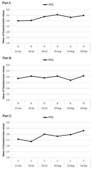4.1.4. Comparison of the Significance of the Questionnaire Dataset PTC with PET