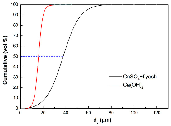 Particle size analysis (Malvern) of the Ca(OH)2 sorbent used, and of the flyash-CaSO4 fines collected.