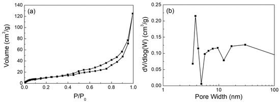 (a) Adsorption and desorption curve; (b) Pore size distribution of Ca(OH)2.