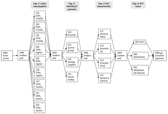 Regarding consumer expectations, Gstrein [11] found that transparency was valued as the most important characteristic of a local energy trading network (to 28% of respondents). Ecker et al. [15] concluded in 2016, when surveying 253 German homeowners on the desirability of exchanging self-generated energy with neighbours, that an emphasis on energy independence (i.e., autarky) made consumers more likely to raise the price of their self-generated energy, resulting in less peer-to-peer energy trading. The study by Mengelkamp et al. [12] found that data usage within local energy markets is of little importance to German consumers. While informative, these studies do not focus specifically on the characteristics of these arrangements’ underlying technology. We have also not identified any work which attempts to assess the characteristics of DLTs as they might be experienced by consumers in the context of energy. This survey aims to fill this gap, by surveying consumers’ perception of the properties that have been most used in the promotional language of blockchain energy businesses, namely the technology’s immutability, anonymity, transparency and decentralisation (the process is described in Appendix A).