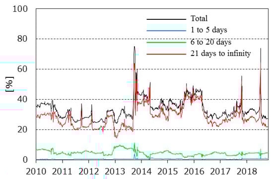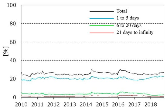 Based on the Fourier transform utilized by Baruník and Křehlík [], we spectrally decompose Diebold and Yilmaz’s [] indexes into short-term (1 to 5 business days) factors, medium-term (6 to 20 business days) factors, and long-term (from 21 business days onward) factors.