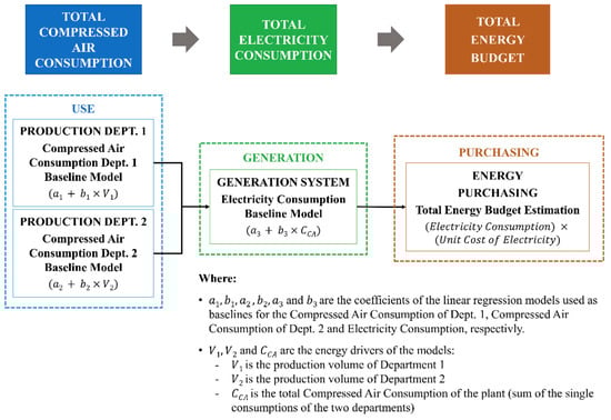The methodology is built on statistical tools for energy measurement and verification and energy monitoring and targeting [6,19,28], which were then customized for real time energy performance control (and auxiliary industrial systems, with particular focus on CAS) in order to draw a complete picture of the system’s energy behavior, and therefore, create a reliable baseline.