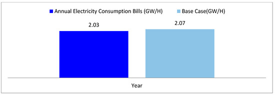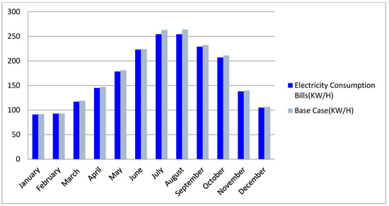 In the building simulation process, establishing an appropriate base case that represent a model for the building existing situation is the key step in evaluating energy consumption. Through the comparison between the base case monthly and annual consumption results to the actual energy consumption, the difference is 1.9% more than the actual consumption which is an acceptable percentage in simulation,