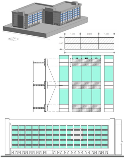 Fenestrations: The absence of fenestrations in all the facades causes a permanent use of Heating, ventilation, and air conditioning (HVAC) system that leads to high energy consumption. The curtain wall facade is tinted double glass (U-value 3.77 W/m