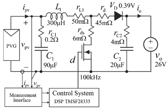 According to Equations (22) and (30), the maximum allowed perturbation step size is directly dependent on the level of the inductor current, which depends on the level of irradiation as well. The relation between the PVG current and the inductor current depends on the power stage of the interfacing converter: