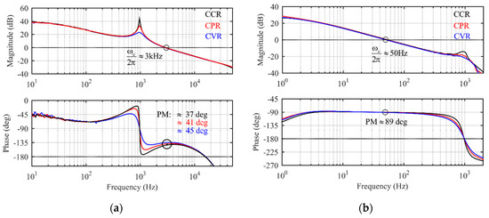 Figure 11b,c show that the inductor current moves towards DCM when the operating point moves to higher voltages, where the initial inductor current is slightly smaller. The change in the damping behavior is also clearly visible, The increase in the damping prevents the inductor current to enter fully into DCM when the PVG current slightly decreases in CPR and CVR compared to CCR (cf.