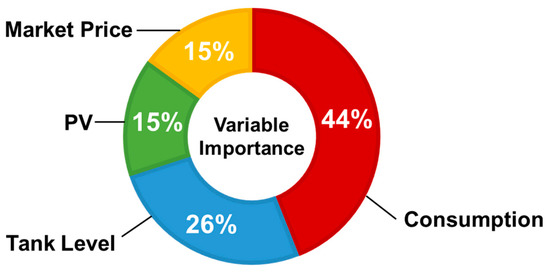 All the variables used in the DT have an importance rate, and as shown in Table 3, consumption is the most important variable. More specifically, Figure 8 illustrates the importance of each predictor variable in the DT, scaled to sum to 100%.