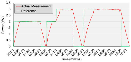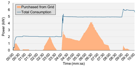Furthermore, Figure 14 shows the whole consumption profile produced during the emulation of the system as well as the power that was supplied by the utility grid during the emulation. All resources were operated in a grid-connected mode in this laboratory experiment, and the electricity network was considered as an external supplier that supports the system when the local energy resources cannot supply the electricity demand.
