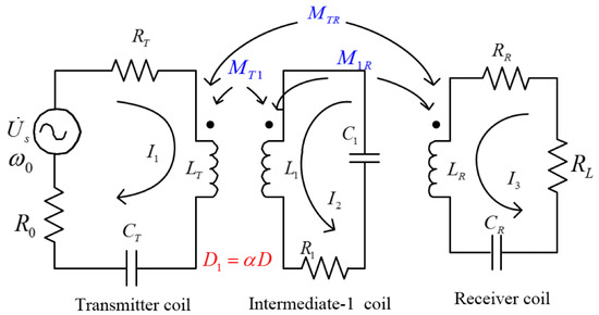 To facilitate the analysis, the distance between the transmitter coil and the intermediate coil-1 is ; the transfer distance between the transmitter and the receiver coil is D, and the distance coefficient is defined as the position of the intermediate coil-1:
