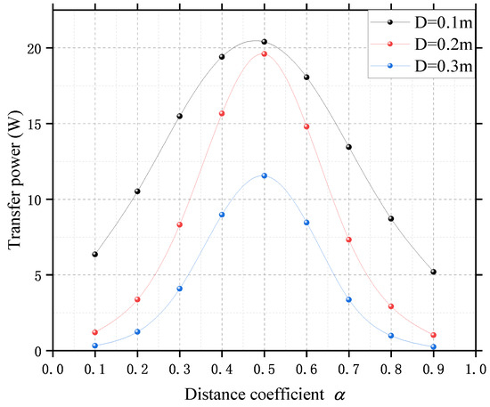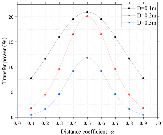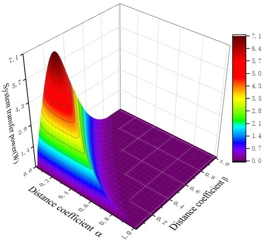 The relationship between transfer power and distance coefficient can be obtained by Equations (6)–(12):