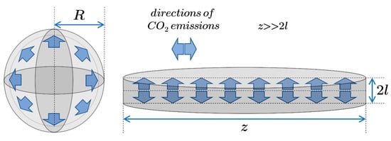 In the case of a sphere with a radius (Figure 8) Equation (3) takes the form: