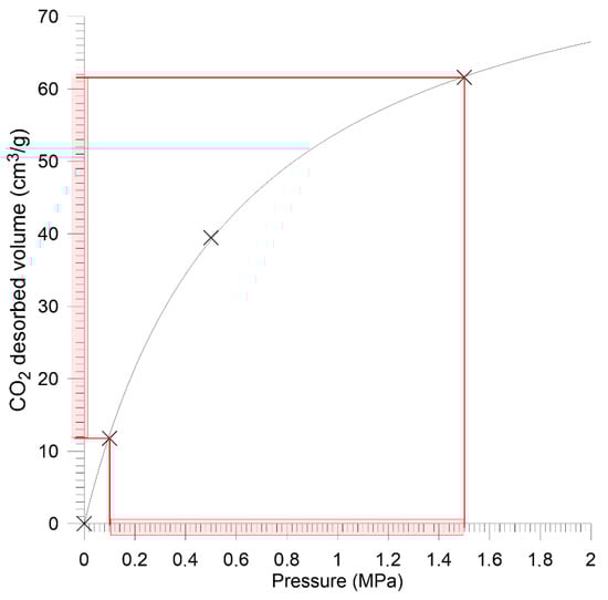 In accordance with the described measurement methodology, sorption isotherms for granular samples were plotted: Sobieski mine (Figure 9) and Budryk mine (Figure 10). Sorption capacities at individual pressures and Langmuir sorption isotherm parameters are presented in Table 3.
