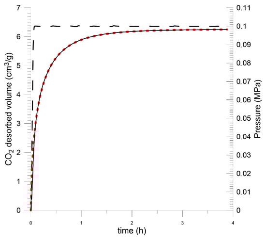 The values of the R-squared coefficient and the values of the sum of squared deviations of the model fitting to the measured values (Table 4) indicate that the plane sheet model does not describe the course of CO2 desorption from such samples worse than the commonly used unipor model for granular samples. This result may be related to the fact that the roundness of the sieved coal grains is only statistical, while the shape of the plane sheet samples is more consistent with the model shape.