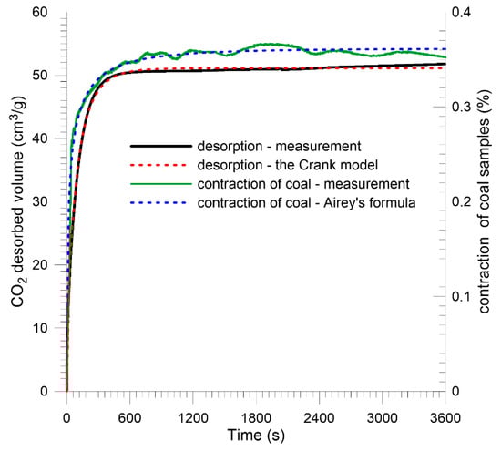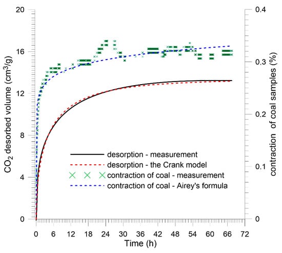 Kinetics of shrinkage of Budryk mine coal juxtaposed with CO2 desorption kinetics—plane sheet sample.