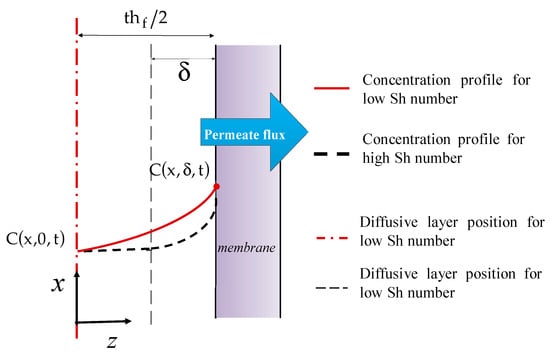 22] compared the film theory results obtained by an analytical model and a two-dimensional numerical convection–diffusion model. This study, which has been experimentally validated, showed the relevance of the film theory model for steady working conditions. A dynamic model for tubular membranes was also introduced by Ali et al. [