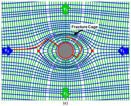 - Weijermars, R. Mapping stress trajectories and width of the stress-perturbation zone near a cylindrical wellbore. Int. J. Rock Mech. Min. Sci. 2013, 64, 148–159. [Google Scholar] [CrossRef]