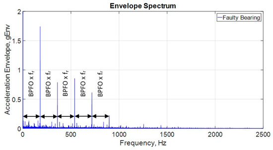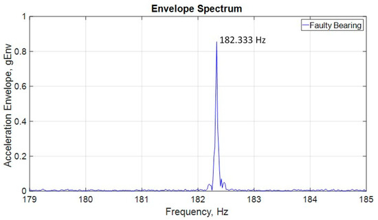 Acceleration envelope spectrum for the faulty bearing.