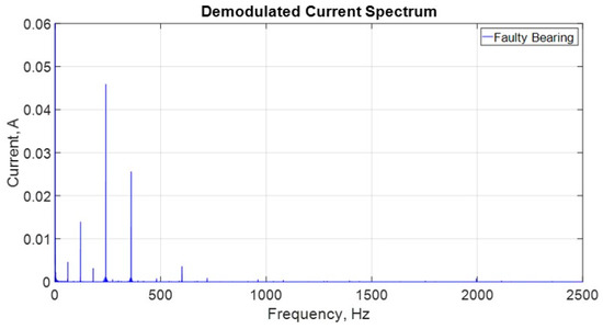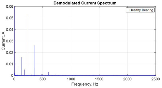 Demodulated current spectrum for the motor with a healthy bearing.