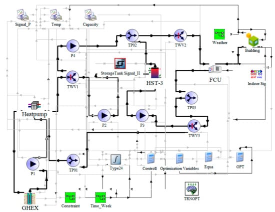 Simulation model with GSHP and optimization model in TRNSYS.