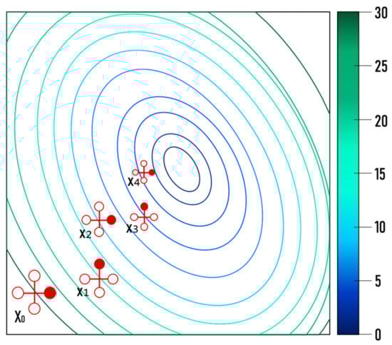 The coordinate search method algorithm is an optimization algorithm that uses the generalized pattern search algorithm. The pattern search method is an optimization algorithm proposed by Hooke and Jeeves [28]. The pattern search algorithm does not need a gradient and can solve nonlinear optimization problems.