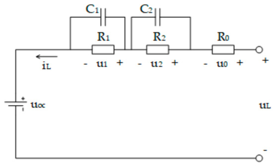 Considering the accuracy and complexity of the model, the double polarization (DP) model based on second-order resistor-capacitor (RC) network is chosen in this study [21]. The structure of the circuit is shown in Figure 1.