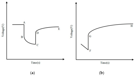 (a) Voltage response curve under pulse discharge; (b) voltage response curve under long discharge recovery.