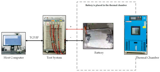 In this study, we chose one specific manufacturer’s LiNixMnyCo1-x-yO2 lithium-ion battery as the experimental object considering not only actual condition but also it is a lithium-ion battery with typical ternary cathode material, and its basic parameters are shown in Table 1. Neware (Shen Zhen, China) Battery Test System CT-4008-5V100A was selected as battery testing equipment, and a PC host was equipped to control the testing step and record the experimental data. Qin Zhuo Huan Ce (Dong Guan, China) thermal chamber GDW-100 was chosen as ambient temperature controller. Since this study did not involve the influence of ambient temperature of batteries, all experiments were conducted at 25 ℃. The structure of the experimental bench is shown in Figure 5.